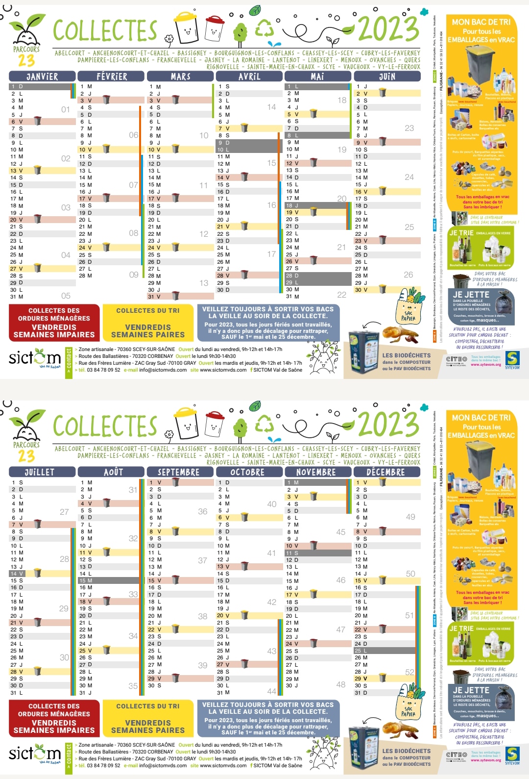 Le ramassage des ordures ménagères ainsi que la collecte de la poubelle jaune, se fait suivant le calendrier en pièce jointe.